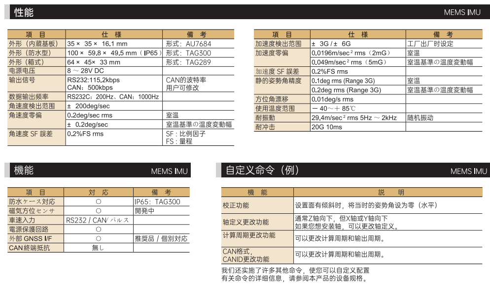 多摩川 MEMSIMU(小型三軸慣性傳感器單元)