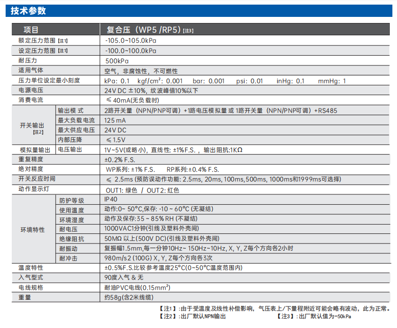 - 壓力單位可轉(zhuǎn)換: kPa、MPa、kgf/cm2、bar、psi、inHg、mmHg