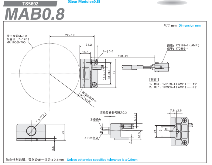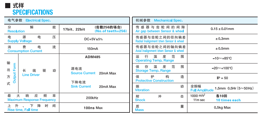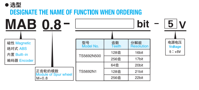 • 絕對值串行輸出(NRZ多摩川標準)齒輪模數(shù)=0.8
